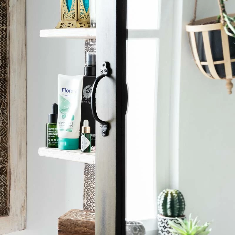 - 1 porte en bois, 1 miroir et 6 surfaces de rangement
