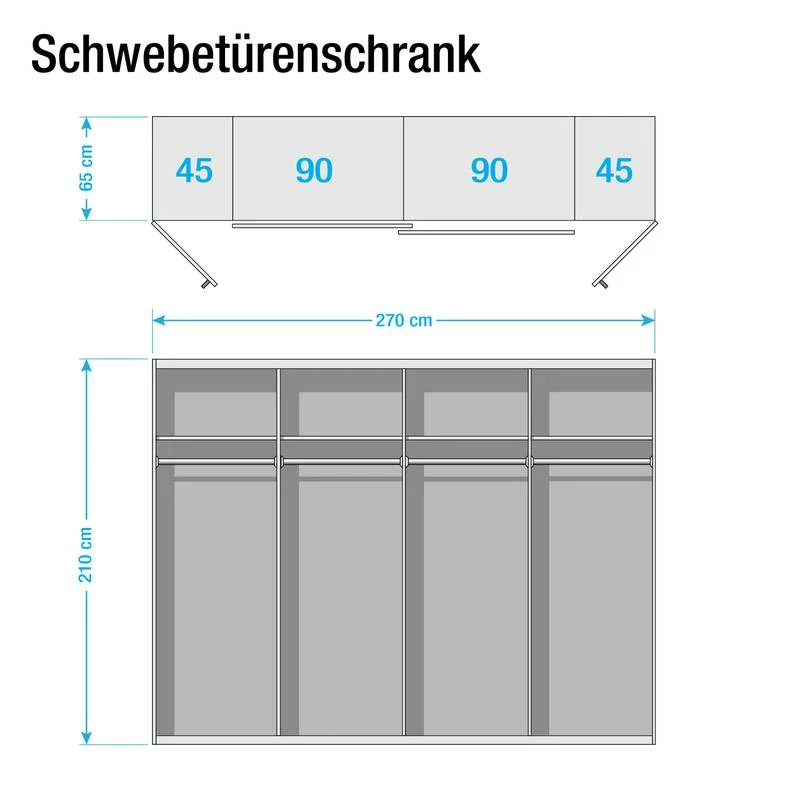 - 2 portes coulissantes renfermant chacune 1 étagère et 1 tringle à vêtements