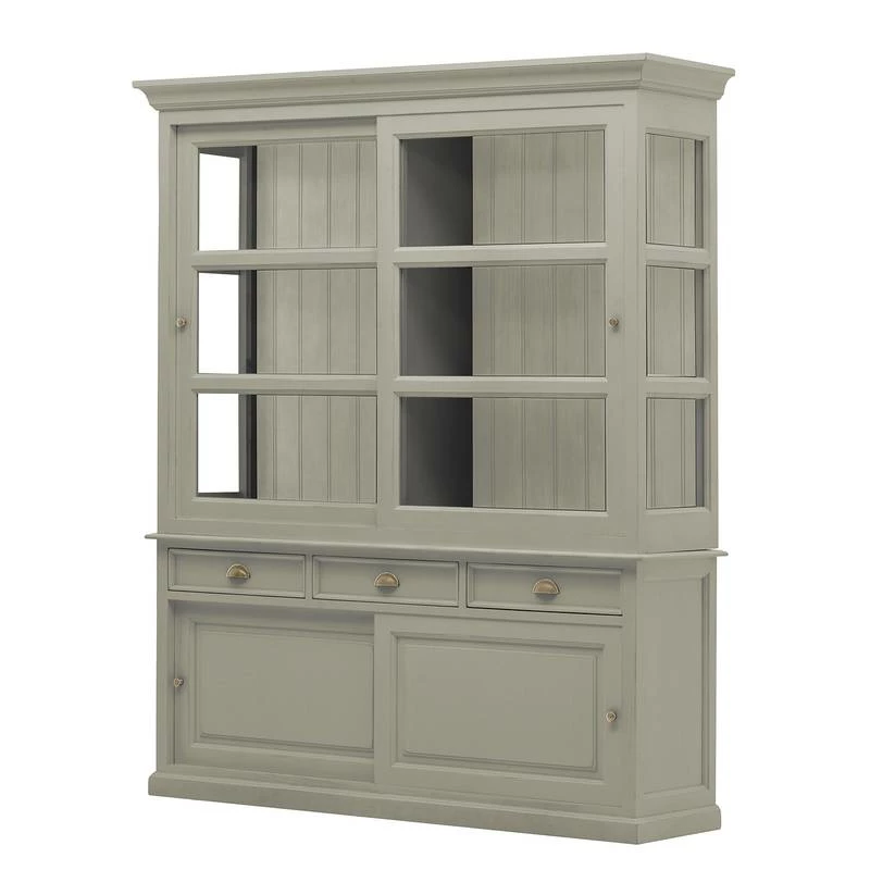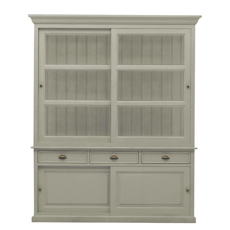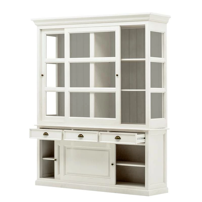 - 2 portes vitrées coulissantes, chacune avec 2 étagères en bois
