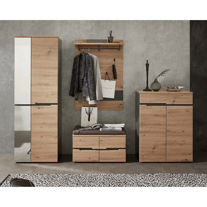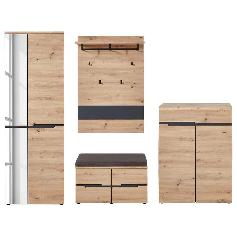 - Contenu de la livraison : 1 armoire, 1 meuble à chaussures, 1 porte-manteau mural et 1 banc d’entrée, sans accessoires