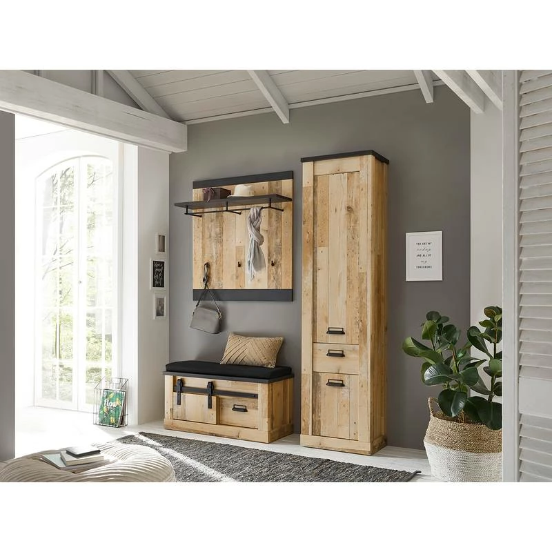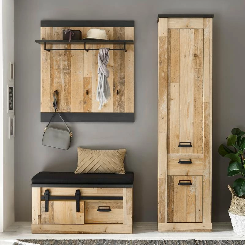 - Contenu de la livraison : Ensemble d’entrée comprenant 1 porte-manteau mural, 1 armoire et 1 banc d’entrée avec coussin, sans accessoires