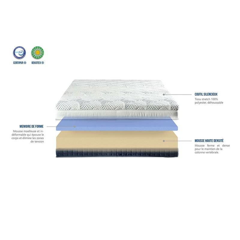 - Matelas : Matelas de mousse visco-élastique et mousse froide