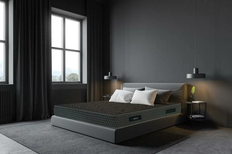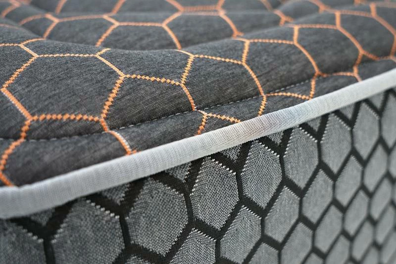 - Composition du textile : 8cm de mousse à mémoire de forme 50kg + 3cm de Viscographène + 1cm de mousse Super Soft 20kg + 5cm de Viscographène profilé avec 12 zones de repos + Noyau de 19cm mousse polyuréthane 35kg