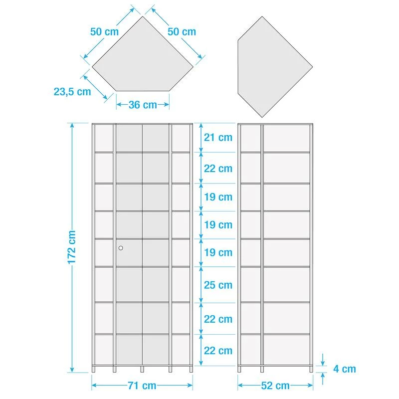 - Contenu de la livraison : vitrine d’angle sans décoration